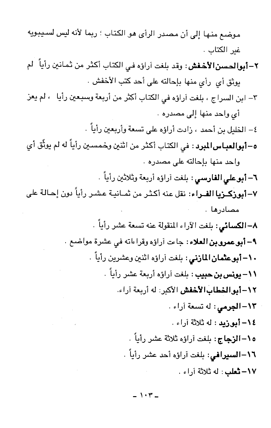 10 - أبو عثمان المازني: بلغت آراؤه اثنين وعشرين رأيا.
