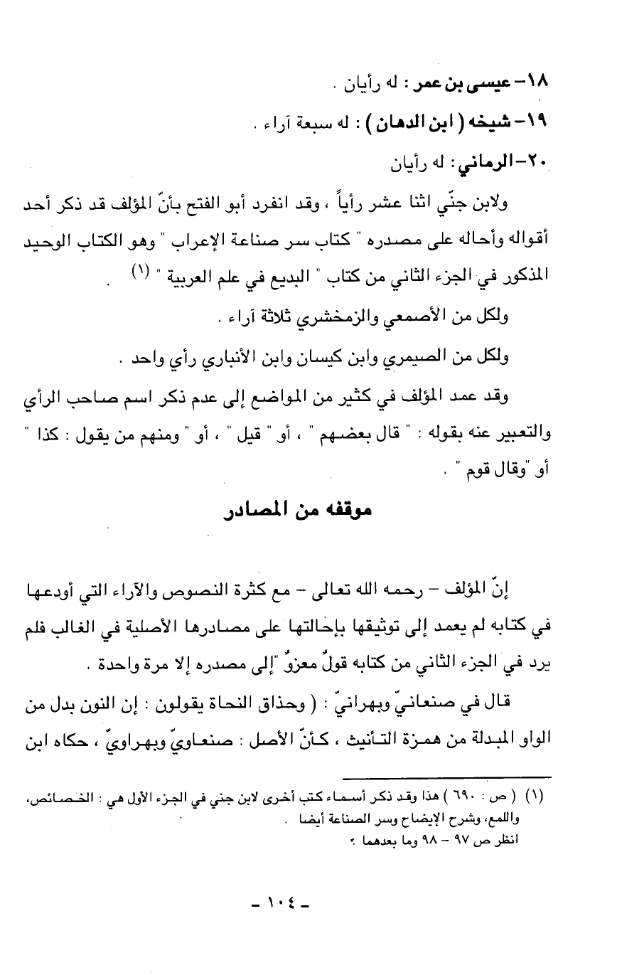 (¬1) (ص: 690) هذا وقد ذكر أسماء كتب أخرى لابن جني في الجزء الأول هي: الخصائص، واللمع، وشرح الإيضاح وسر الصناعة أيضا.