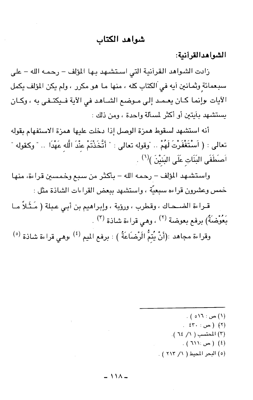 واستشهد المؤلف - رحمه الله - بأكثر من سبع وخمسين قراءة، منها خمس وعشرون قراءه سبعيّة، واستشهد ببعض القراءات الشاذة مثل: