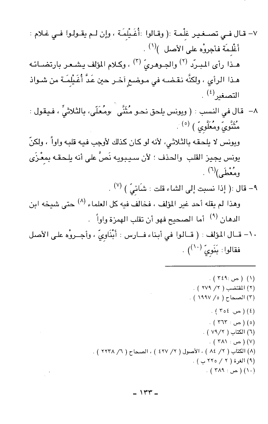 8 - قال في النسب: (ويونس يلحق نحو مثنّى، ومعلّى، بالثلاثيّ، فيقول: