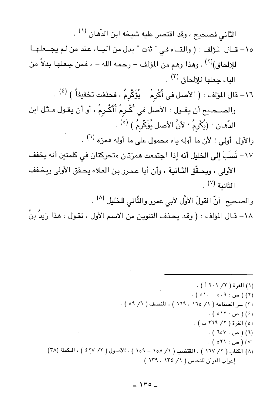 (¬8) الكتاب (2/ 167)، المقتضب (1/ 158 - 159)، الأصول (2/ 427)، التكملة (38) إعراب القرآن للنحاس (1/ 134، 139).