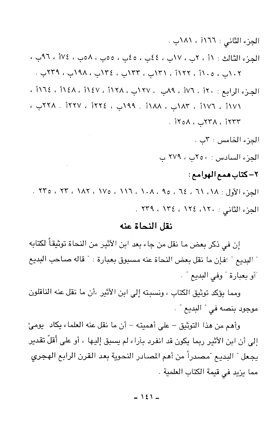 إن في ذكر بعض ما نقل من جاء بعد ابن الأثير من النحاة توثيقا لكتابه" البديع"؛ فإن ما نقل بعض النحاة عنه مسبوق بعبارة:" قاله صاحب البديع" أو بعبارة" وفي البديع".