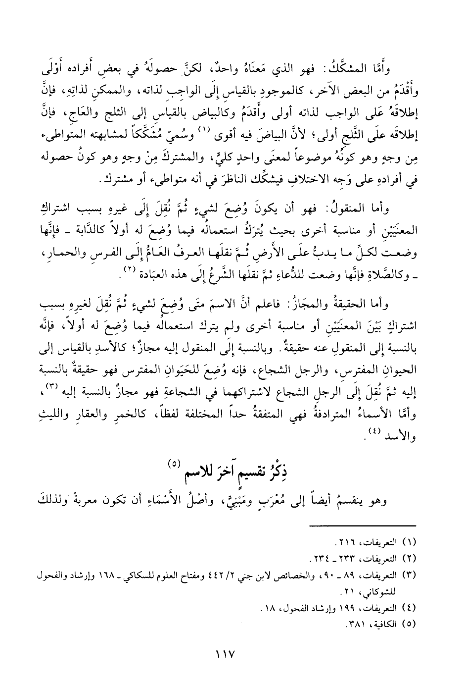 (¬3) التعريفات، 89 - 90، والخصائص لابن جني 2/ 442 ومفتاح العلوم للسكاكي - 168 وإرشاد والفحول للشوكاني، 21.