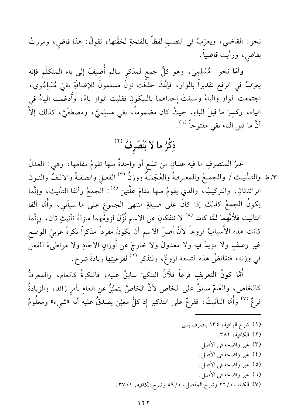(¬7) الكتاب 1/ 22 وشرح المفصل، 1/ 59 وشرح الكافية، 1/ 37.