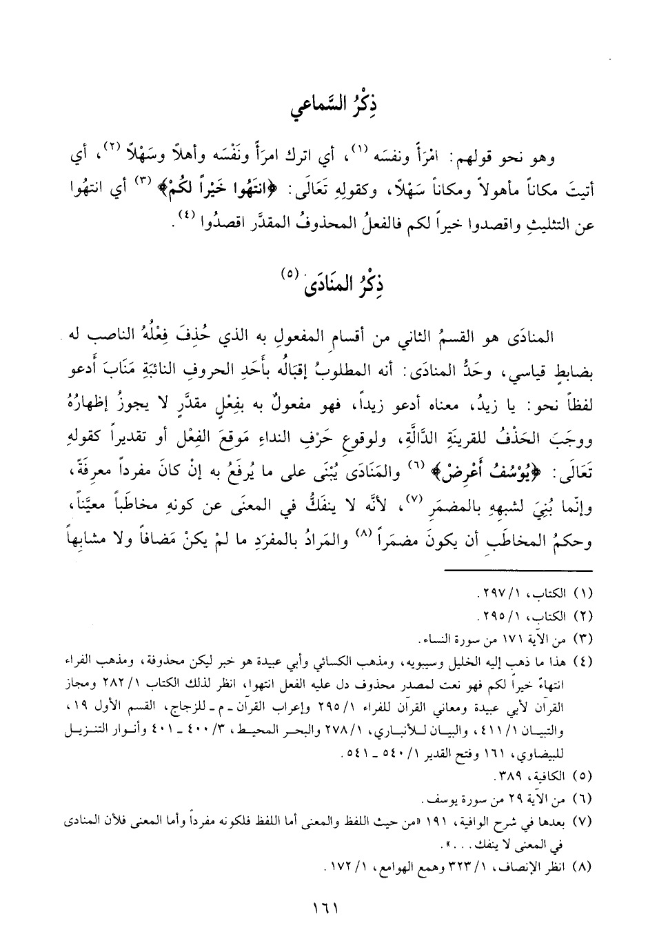 (¬7) بعدها في شرح الوافية، 191 «من حيث اللفظ والمعنى أما اللفظ فلكونه مفردا وأما المعنى فلأن المنادى في المعنى لا ينفك ...».