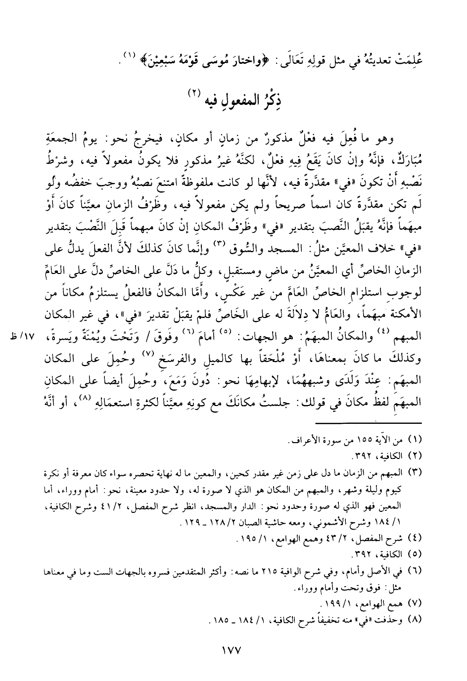 (¬8) وحذفت «في» منه تخفيفا شرح الكافية، 1/ 184 - 185.