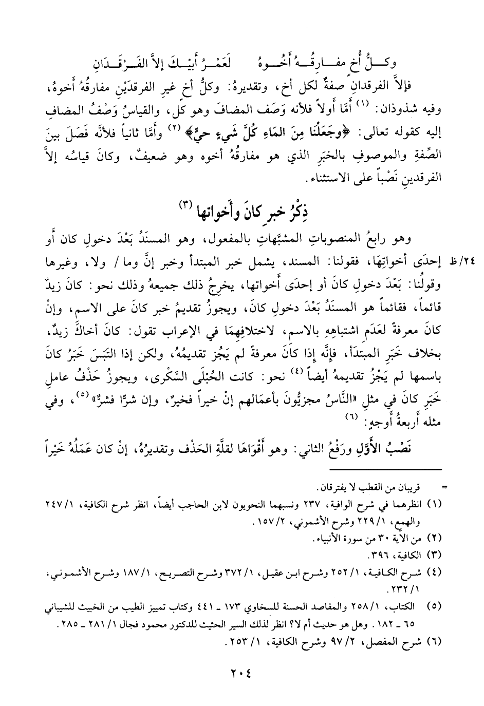 (¬4) شرح الكافية، 1/ 252 وشرح ابن عقيل، 1/ 372 وشرح التصريح، 1/ 187 وشرح الأشموني، 1/ 232.