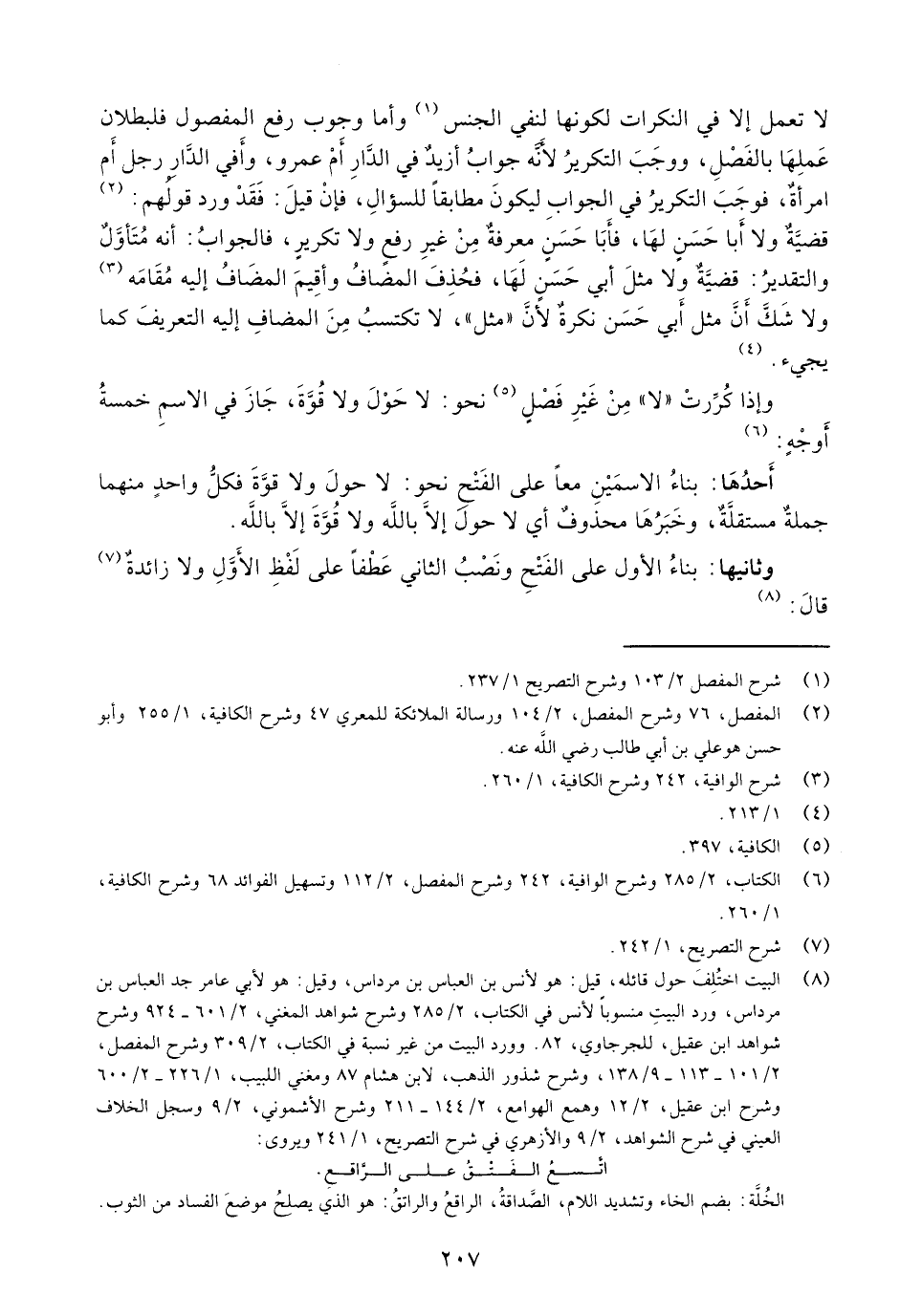 (¬6) الكتاب، 2/ 285 وشرح الوافية، 242 وشرح المفصل، 2/ 112 وتسهيل الفوائد 68 وشرح الكافية، 1/ 260.