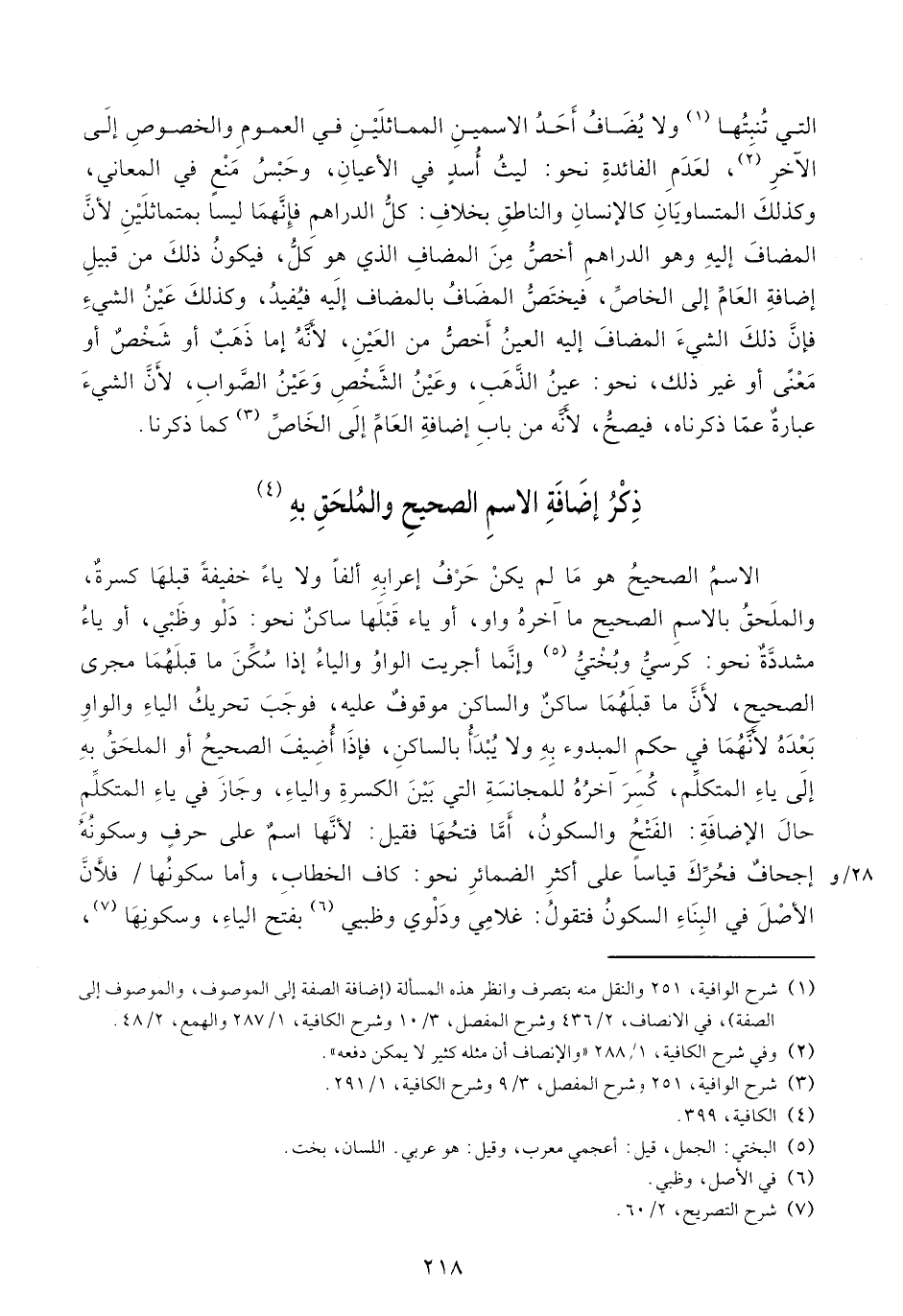 ذكر إضافة الاسم الصحيح والملحق به (¬4)