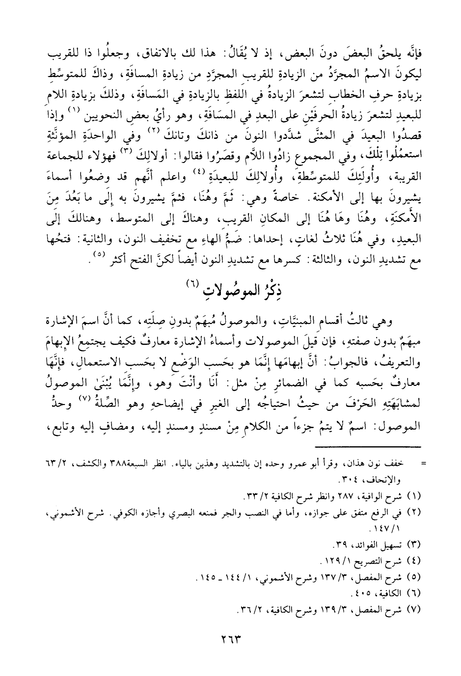 (¬7) شرح المفصل، 3/ 139 وشرح الكافية، 2/ 36.