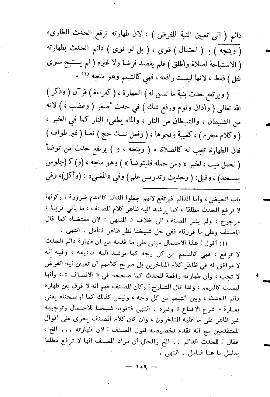 دَائِم (إلَى تَعْيِينِ النِّيَّةِ لِلْفَرْضِ) ، لِأَنَّ طَهَارَتَهُ تَرْفَعُ الْحَدَثَ الطَّارِئَ (وَيَتَّجِهُ) بِ (احْتِمَالٍ) قَوِيٍّ، (بَلْ لَوْ نَوَى) دَائِمُ الْحَدَثِ بِطَهَارَتِهِ (الِاسْتِبَاحَةَ لِصَلَاةٍ وَأَطْلَقَ) فَلَمْ يَقْصِدْ فَرْضًا وَلَا غَيْرَهُ (لَمْ يَسْتَبِحْ سِوَى نَفْلٍ) فَقَطْ، لِأَنَّهَا لَيْسَتْ رَافِعَةً، فَهِيَ كَالتَّيَمُّمِ وَهُوَ مُتَّجِهٌ.