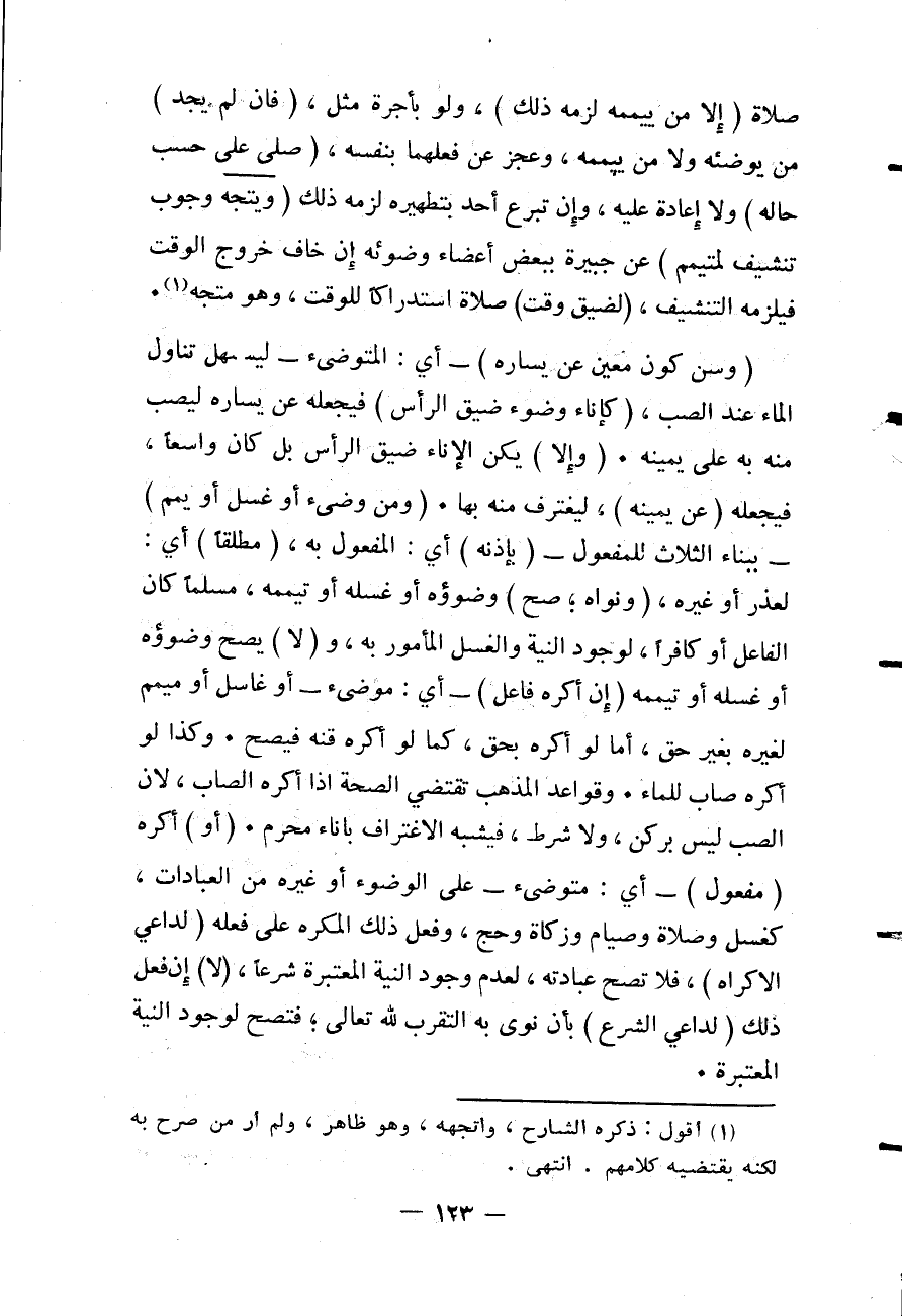 (وَمَنْ) (وُضِّئَ أَوْ غُسِّلَ أَوْ يُمِّمَ) - بِبِنَاءِ الثَّلَاثِ لِلْمَفْعُولِ - (بِإِذْنِهِ) أَيْ: الْمَفْعُولِ بِهِ، (مُطْلَقًا) أَيْ: لِعُذْرٍ أَوْ غَيْرِهِ، (وَنَوَاهُ) (؛ صَحَّ) وُضُوءُهُ أَوْ غُسْلُهُ أَوْ تَيَمُّمُهُ، مُسْلِمًا كَانَ الْفَاعِلُ أَوْ كَافِرًا، لِوُجُودِ النِّيَّةِ وَلِوُجُودِ الْغُسْلِ الْمَأْمُورِ بِهِ، و (لَا) يَصِحُّ وُضُوءُهُ أَوْ غُسْلُهُ أَوْ تَيَمُّمُهُ (إنْ أُكْرِهَ فَاعِلٌ) - أَيْ: مُوَضِّئٌ - أَوْ غَاسِلٌ أَوْ مُيَمِّمٌ لِغَيْرِهِ بِغَيْرِ حَقٍّ، أَمَّا لَوْ أُكْرِهَ بِحَقٍّ، كَمَا لَوْ أَكْرَهَ قِنَّهُ فَيَصِحُّ. وَكَذَا لَوْ أُكْرِهَ صَابٌّ لِلْمَاءِ. وَقَوَاعِدُ الْمَذْهَبِ تَقْتَضِي الصِّحَّةَ إذَا أُكْرِهَ الصَّابُّ، لِأَنَّ الصَّبَّ لَيْسَ بِرُكْنٍ وَلَا شَرْطٍ، فَيُشْبِهُ الِاغْتِرَافَ بِإِنَاءٍ مُحَرَّمٍ. (أَوْ) أُكْرِهَ (مَفْعُولٌ) - أَيْ: مُتَوَضِّئٌ - عَلَى الْوُضُوءِ أَوْ غَيْرِهِ مِنْ الْعِبَادَاتِ، كَغُسْلٍ وَصَلَاةٍ وَصِيَامٍ وَزَكَاةٍ وَحَجٍّ، وَفَعَلَ ذَلِكَ الْمُكْرَهُ عَلَى فِعْلِهِ (لِدَاعِي الْإِكْرَاهِ) فَلَا تَصِحُّ عِبَادَتُهُ، لِعَدَمِ وُجُودِ النِّيَّةِ الْمُعْتَبَرَةِ شَرْعًا، (لَا) إنْ فَعَلَ ذَلِكَ (لِدَاعِي الشَّرْعِ) بِأَنْ نَوَى بِهِ التَّقَرُّبَ لِلَّهِ تَعَالَى فَتَصِحُّ لِوُجُودِ النِّيَّةِ الْمُعْتَبَرَةِ.