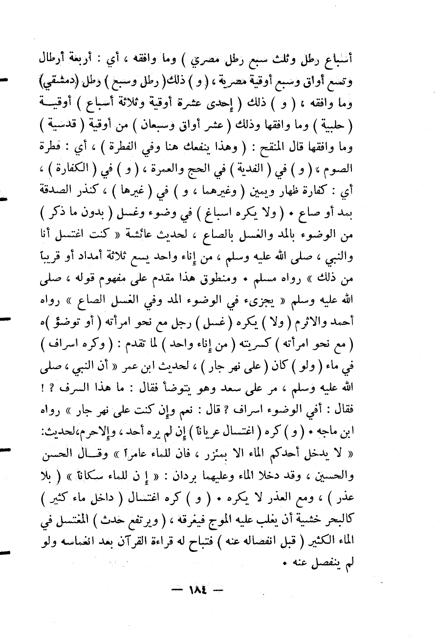 أَسْبَاعِ رَطْلٍ وَثُلُثُ سُبْعِ رَطْلٍ مِصْرِيٍّ) وَمَا وَافَقَهُ، أَيْ: أَرْبَعَةُ أَرْطَالِ وَتِسْعُ أَوَاقٍ وَسُبْعُ أُوقِيَّةٍ مِصْرِيَّةٍ، (وَ) ذَلِكَ (رَطْلٌ وَسُبْعُ) رَطْلٍ (دِمَشْقِيٍّ) وَمَا وَافَقَهُ، (وَ) ذَلِكَ (إحْدَى عَشْرَةَ أُوقِيَّةً وَثَلَاثَةَ أَسْبَاعِ) أُوقِيَّةٍ (حَلَبِيَّةٍ) وَمَا وَافَقَهَا وَذَلِكَ (عَشْرُ أَوَاقٍ وَسُبْعَانِ) مِنْ أُوقِيَّةٍ (قُدْسِيَّةٍ) وَمَا وَافَقَهَا قَالَ الْمُنَقِّحُ: (وَهَذَا يَنْفَعُكَ هُنَا وَفِي الْفِطْرَةِ) ، أَيْ: فِطْرَةِ الصَّوْمِ، (وَ) فِي (الْفِدْيَةِ) فِي الْحَجِّ وَالْعُمْرَةِ، (وَ) فِي (الْكَفَّارَةِ) ، أَيْ: كَفَّارَةِ ظِهَارٍ وَيَمِينٍ (وَغَيْرِهِمَا، وَ) فِي (غَيْرِهَا) ، كَنَذْرِ الصَّدَقَةِ بِمُدٍّ أَوْ صَاعٍ.