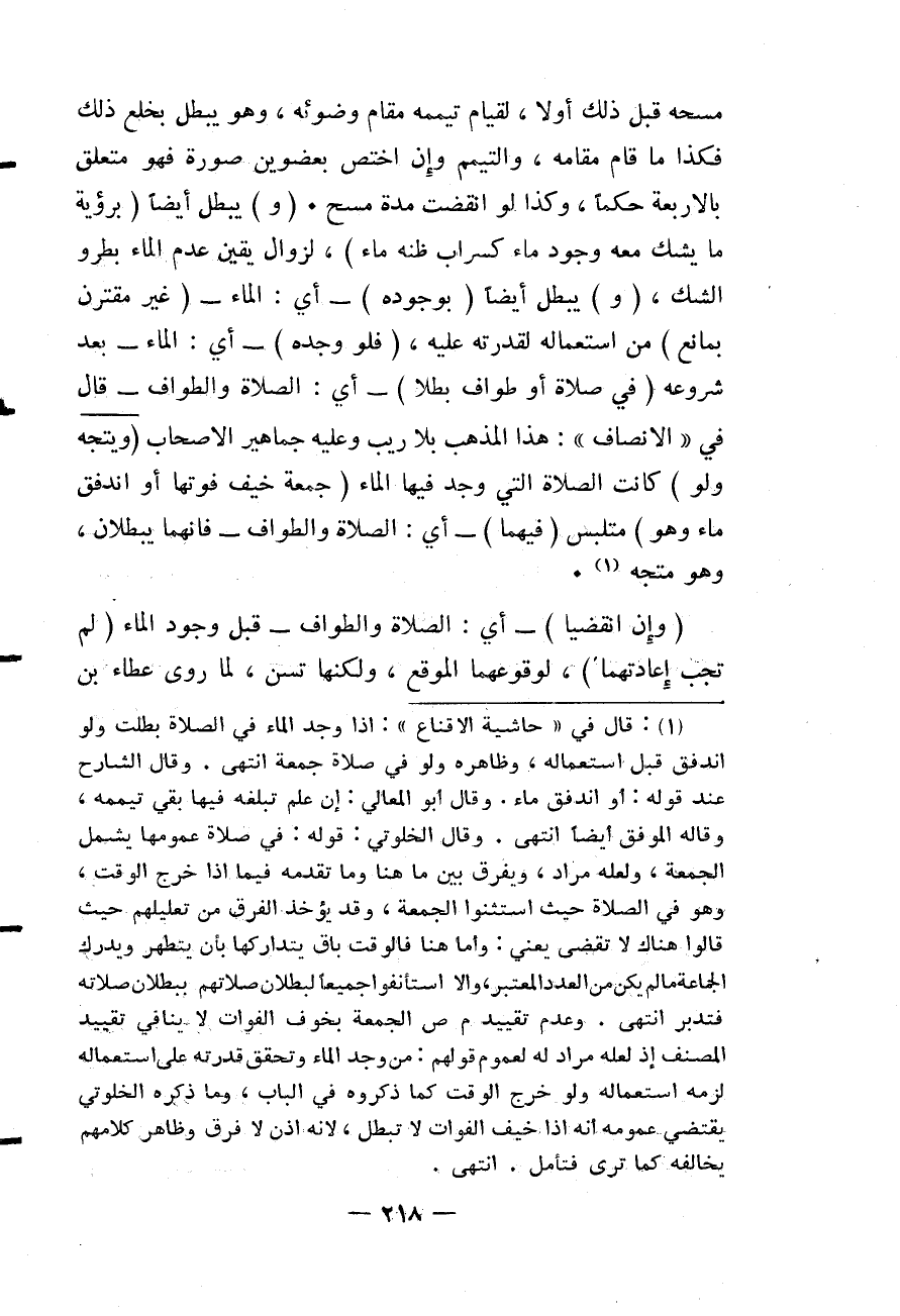 (وَيَتَّجِهُ وَلَوْ) كَانَتْ الصَّلَاةُ الَّتِي وَجَدَ فِيهَا الْمَاءَ (جُمُعَةً خِيفَ فَوْتُهَا أَوْ انْدَفَقَ مَاءٌ وَهُوَ) مُتَلَبِّسٌ (فِيهِمَا) - أَيْ: الصَّلَاةِ وَالطَّوَافِ - فَإِنَّهُمَا يَبْطُلَانِ، وَهُوَ مُتَّجِهٌ.