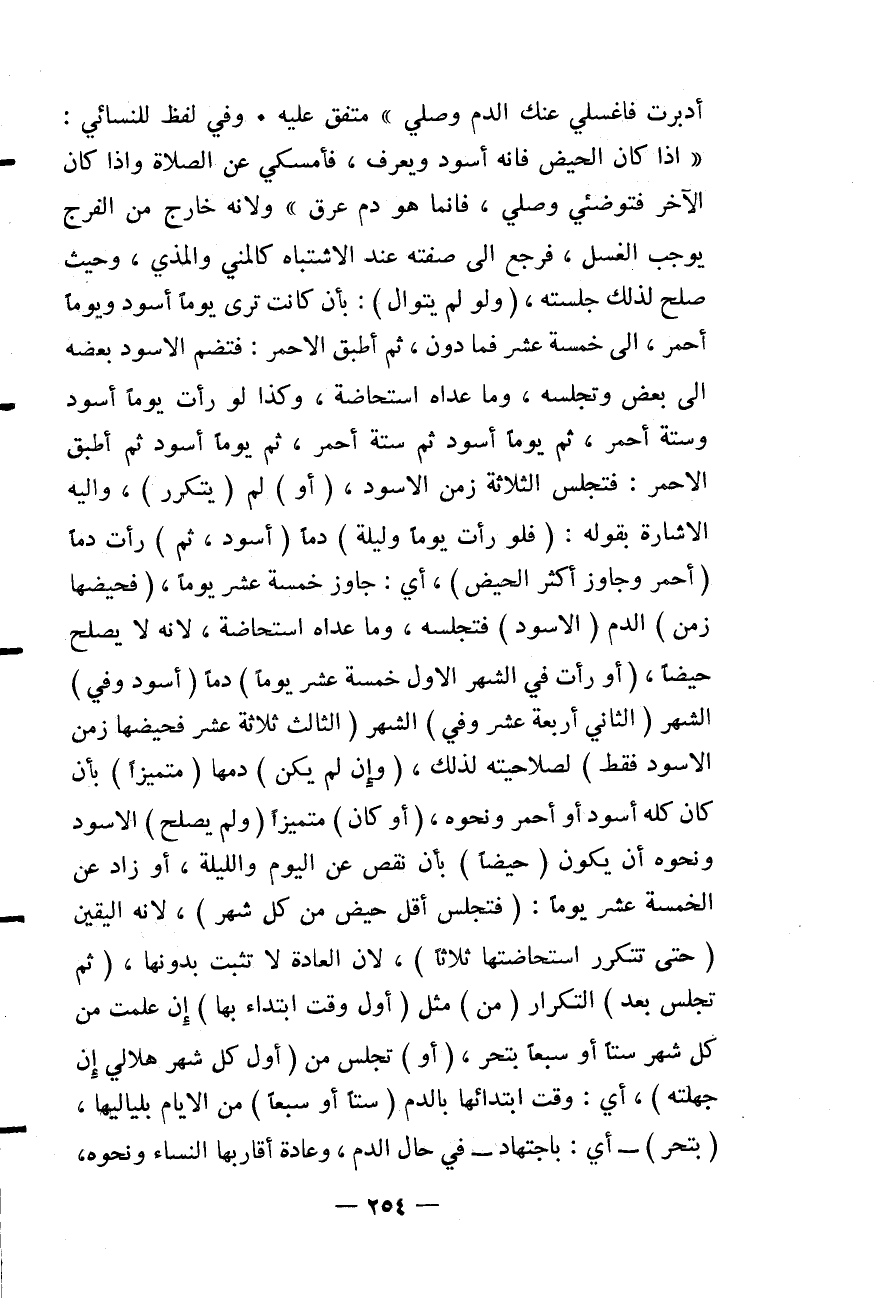 أَدْبَرَتْ فَاغْسِلِي عَنْك الدَّمَ وَصَلِّي» مُتَّفَقٌ عَلَيْهِ. وَفِي لَفْظٍ لِلنَّسَائِيِّ: «إذَا كَانَ الْحَيْضُ فَإِنَّهُ أَسْوَدُ وَيُعْرَفُ، فَأَمْسِكِي عَنْ الصَّلَاةِ وَإِذَا كَانَ الْآخَرَ فَتَوَضَّئِي وَصَلِّي، فَإِنَّمَا هُوَ دَمُ عِرْقٍ»