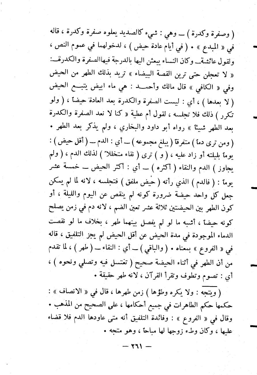 قَالَهُ فِي " الْفُرُوعِ " بِمَعْنَاهُ. (وَالْبَاقِي) - أَيْ: النَّقَاءُ - (طُهْرٌ) ، لِمَا تَقَدَّمَ مِنْ أَنَّ الطُّهْرَ فِي أَثْنَاءِ الْحَيْضَةِ صَحِيحٌ (تَغْتَسِلُ فِيهِ وَتُصَلِّي وَنَحْوُهُ) ، أَيْ: تَصُومُ وَتَطُوفُ وَتَقْرَأُ الْقُرْآنَ؛ لِأَنَّهُ طُهْرٌ حَقِيقَةً. (وَيَتَّجِهُ: وَلَا يُكْرَهُ وَطْؤُهَا) زَمَنَ طُهْرِهَا.