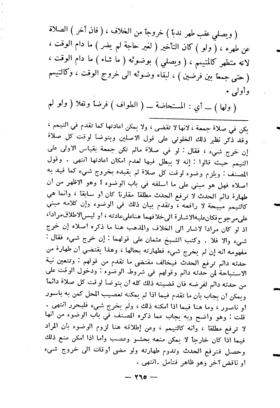 (وَيُصَلِّي عَقِبَ طُهْرٍ نَدْبًا) خُرُوجًا مِنْ الْخِلَافِ، (فَإِنْ أَخَّرَ) الصَّلَاةَ عَنْ طُهْرِهِ، (وَلَوْ) كَانَ التَّأْخِيرُ (لِغَيْرِ حَاجَةٍ لَمْ يَضُرَّ) مَا دَامَ الْوَقْتُ؛ لِأَنَّهُ مُتَطَهِّرٌ كَالْمُتَيَمِّمِ، (وَيُصَلِّي) بِوُضُوئِهِ (مَا شَاءَ) مَا دَامَ الْوَقْتُ، (حَتَّى جَمَعَا بَيْنَ فَرْضَيْنِ) ، لِبَقَاءِ وُضُوئِهِ إلَى خُرُوجِ الْوَقْتِ، وَكَالتَّيَمُّمِ وَأَوْلَى. (وَلَهَا) - أَيْ: الْمُسْتَحَاضَةِ - (الطَّوَافُ) فَرْضًا وَنَفْلًا (وَلَوْ لَمْ