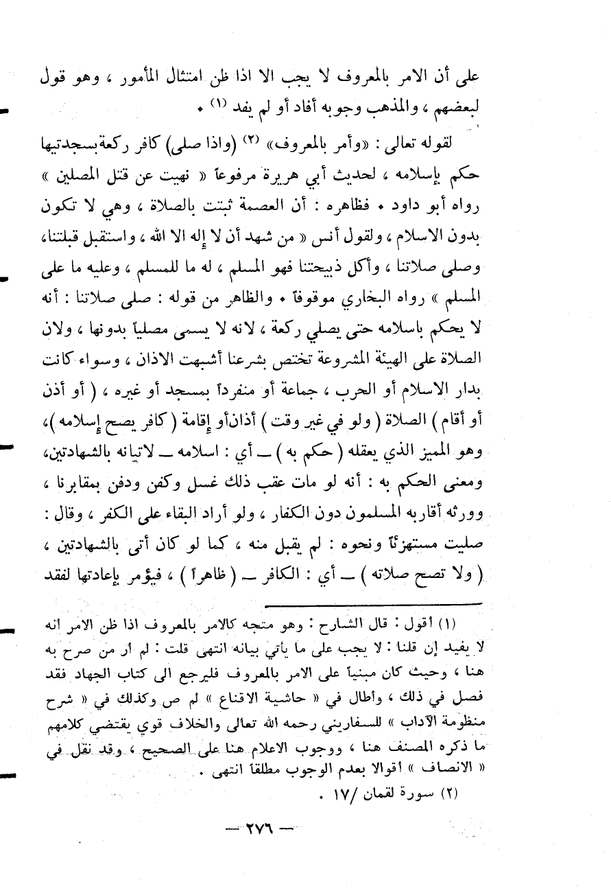 ؛ لِقَوْلِهِ تَعَالَى: {وَأْمُرْ بِالْمَعْرُوفِ} [لقمان: 17] .