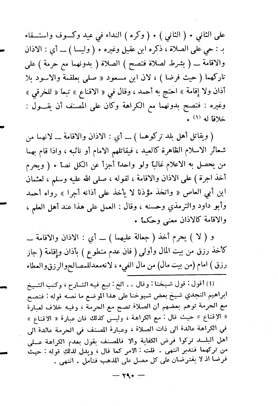 (وَيُقَاتَلُ أَهْلُ بَلَدٍ تَرَكُوهُمَا) - أَيْ: الْأَذَانَ وَالْإِقَامَةَ - لِأَنَّهُمَا مِنْ شَعَائِرِ الْإِسْلَامِ الظَّاهِرَةِ كَالْعِيدِ، فَيُقَاتِلُهُمْ الْإِمَامُ أَوْ نَائِبُهُ، وَإِذَا قَامَ بِهِمَا مَنْ يَحْصُلُ بِهِ الْإِعْلَامُ غَالِبًا، وَلَوْ وَاحِدًا أَجْزَأَ عَنْ الْكُلِّ نَصًّا
