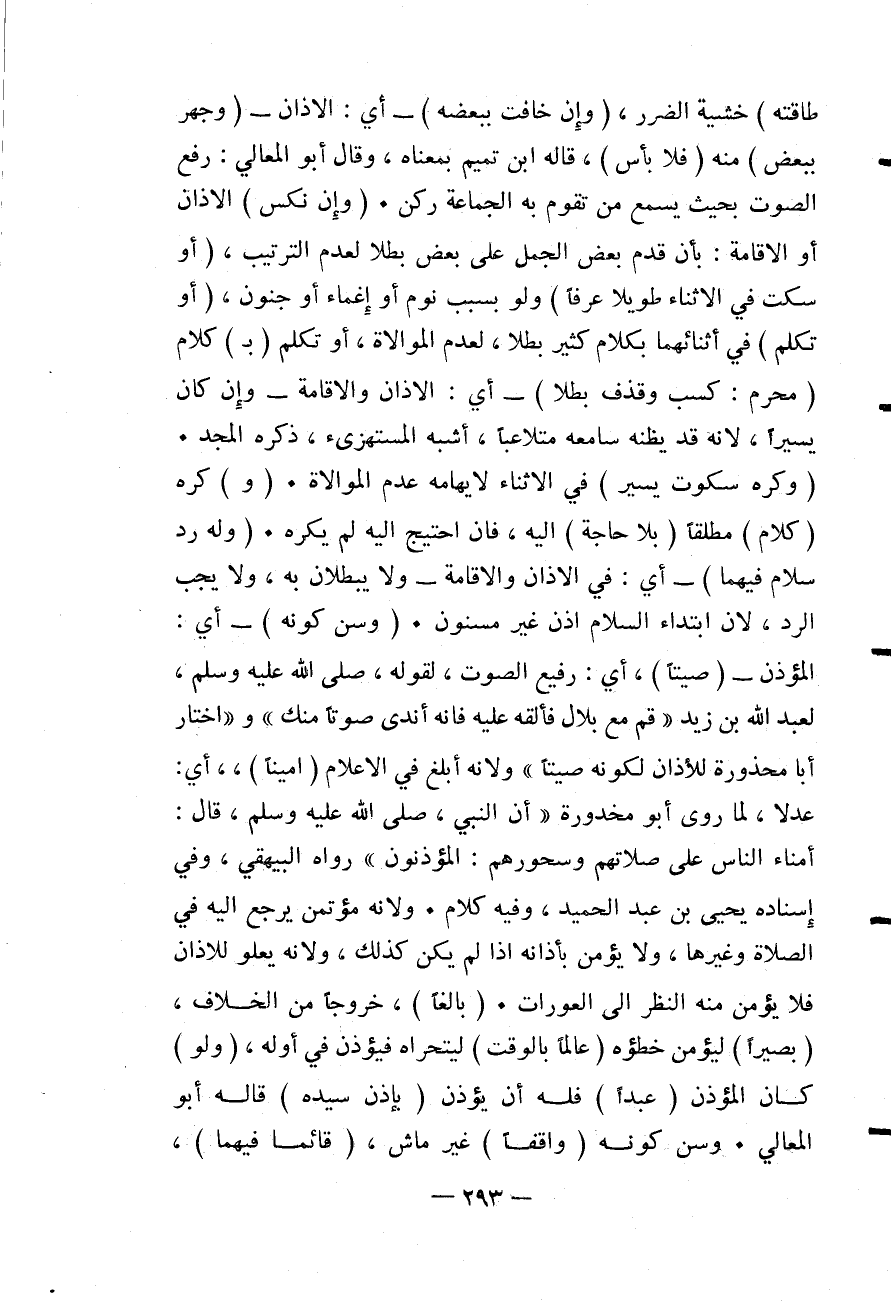 طَاقَتِهِ) خَشْيَةَ الضَّرَرِ، (وَإِنْ خَافَتَ بِبَعْضِهِ) - أَيْ: الْأَذَانِ - (وَجَهَرَ بِبَعْضٍ) مِنْهُ (فَلَا بَأْسَ) ، قَالَهُ ابْنُ تَمِيمٍ بِمَعْنَاهُ، وَقَالَ أَبُو الْمَعَالِي: رَفْعُ الصَّوْتِ بِحَيْثُ يَسْمَعُ مَنْ تَقُومُ بِهِ الْجَمَاعَةُ رُكْنٌ.