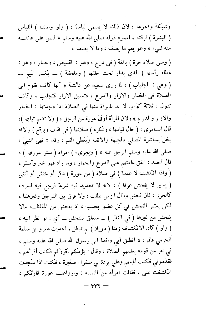 وَشَبَكَةٍ وَنَحْوِهَا؛ لِأَنَّ ذَلِكَ لَا يُسَمَّى لِبَاسًا (وَلَوْ وَصَفَ) اللِّبَاسُ (الْبَشَرَةَ) لِرِقَّتِهِ، لِعُمُومِ قَوْلِهِ - صَلَّى اللَّهُ عَلَيْهِ وَسَلَّمَ - «لَيْسَ عَلَى عَاتِقِهِ مِنْهُ شَيْءٌ» وَهُوَ يَعُمُّ مَا يَصِفُ، وَمَا لَا يَصِفُ.