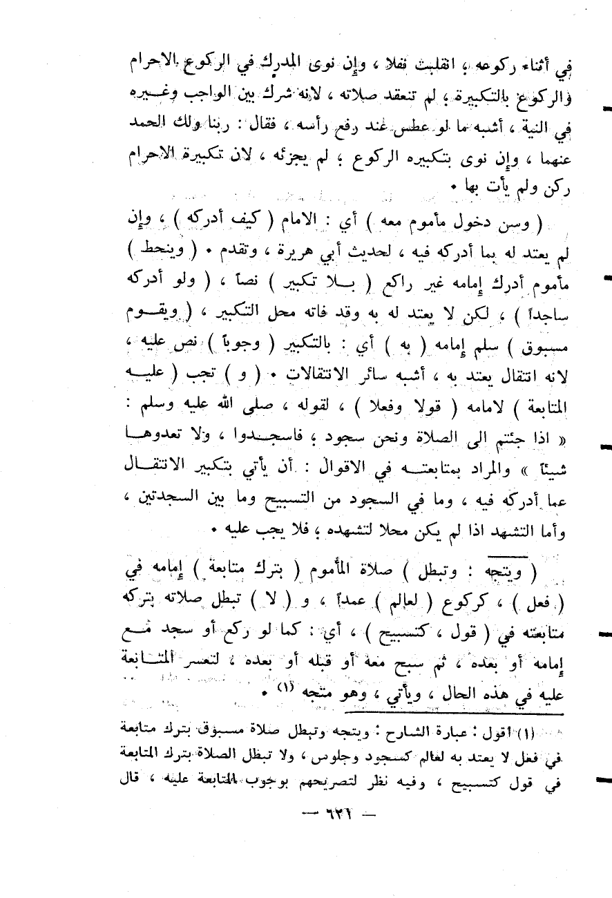 (وَيَتَّجِهُ: وَتَبْطُلُ) صَلَاةُ الْمَأْمُومِ (بِتَرْكِ مُتَابَعَةِ) إمَامِهِ فِي (فِعْلٍ) ، كَرُكُوعٍ (لِعَالِمٍ) عَمْدًا، وَ (لَا) تَبْطُلُ صَلَاتُهُ بِتَرْكِهِ مُتَابَعَتَهُ فِي (قَوْلٍ، كَتَسْبِيحٍ) ، أَيْ: كَمَا لَوْ رَكَعَ أَوْ سَجَدَ مَعَ إمَامِهِ أَوْ بَعْدَهُ، ثُمَّ سَبَّحَ مَعَهُ أَوْ قَبْلَهُ أَوْ بَعْدَهُ، لِتَعَسُّرِ الْمُتَابَعَةِ عَلَيْهِ فِي هَذِهِ الْحَالِ، وَيَأْتِي، وَهُوَ مُتَّجِهٌ.