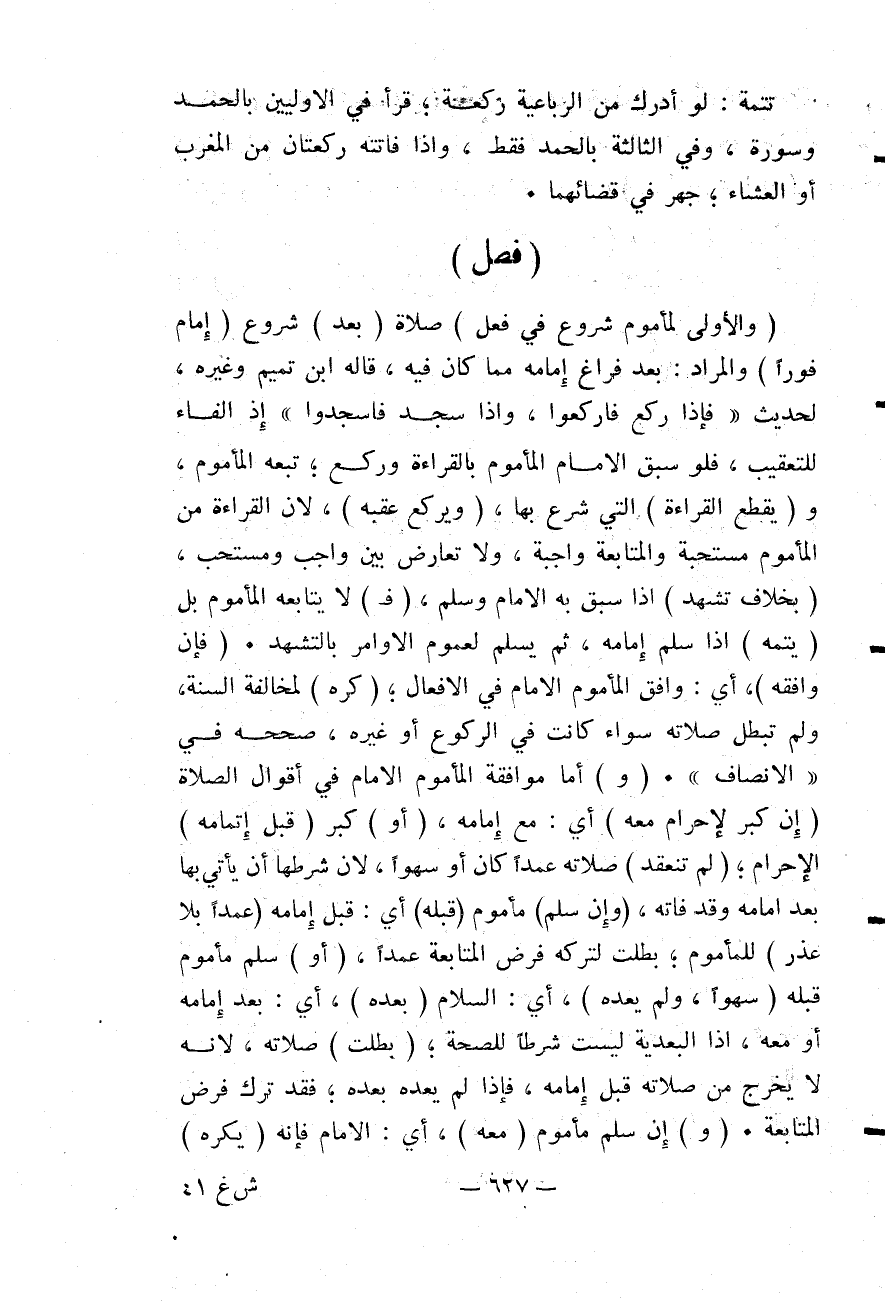 [فَصْلٌ الْأَوْلَى لِمَأْمُومٍ شُرُوعٌ فِي فِعْلِ صَلَاةٍ بَعْدَ شُرُوعِ إمَامٍ فَوْرًا]