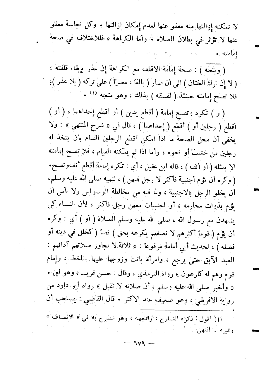 وَأَمَّا الْكَرَاهَةُ، فَلِلِاخْتِلَافِ فِي صِحَّةِ إمَامَتِهِ. (وَيَتَّجِهُ) : صِحَّةُ إمَامَةِ الْأَقْلَفِ مَعَ الْكَرَاهَةِ إنْ عُذِرَ بِإِبْقَاءِ قُلْفَتِهِ، (لَا إنْ تَرَكَ الْخِتَانَ) إلَى أَنْ صَارَ (بَالِغًا، مُصِرًّا) عَلَى تَرْكِهِ (بِلَا عُذْرٍ) ؛ فَلَا تَصِحُّ إمَامَتُهُ حِينَئِذٍ (لِفِسْقِهِ) بِذَلِكَ، وَهُوَ مُتَّجِهٌ.