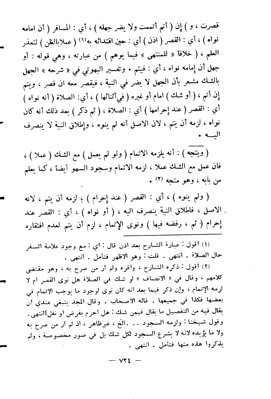 وَتَفْسِيرُ الْبُهُوتِيِّ فِي شَرْحِهِ " الْجَهْلُ بِالشَّكِّ مُشْعِرٌ بِأَنَّ الْجَهْلَ لَا يَضُرُّ فِي النِّيَّةِ، فَيَقْصُرُ مَعَهُ إنْ قَصَرَ، وَيُتِمُّ إنْ أَتَمَّ، (أَوْ شَكَّ) إمَامٌ أَوْ غَيْرُهُ (فِي أَثْنَائِهَا) ، أَيْ: الصَّلَاةِ (أَنَّهُ نَوَاهُ) أَيْ: الْقَصْرَ (عِنْدَ إحْرَامِهَا) أَيْ: الصَّلَاةِ، (ثُمَّ ذَكَرَ) بَعْدَ ذَلِكَ أَنَّهُ كَانَ نَوَاهُ، لَزِمَهُ أَنْ يُتِمَّ، لِأَنَّ الْأَصْلَ أَنَّهُ لَمْ يَنْوِهِ، وَإِطْلَاقُ النِّيَّةِ لَا يَنْصَرِفُ إلَيْهِ. (وَيَتَّجِهُ) : أَنَّهُ يَلْزَمُهُ الْإِتْمَامُ (وَلَوْ لَمْ يَعْمَلْ) مَعَ الشَّكِّ (عَمَلًا) ، فَإِنْ عَمِلَ مَعَ الشَّكِّ عَمَلًا، لَزِمَهُ الْإِتْمَامُ وَسُجُودُ السَّهْوِ أَيْضًا، كَمَا يُعْلَمُ مِنْ بَابِهِ، وَهُوَ مُتَّجِهٌ. (وَلَمْ يَنْوِهِ) ، أَيْ: الْقَصْرَ (عِنْدَ إحْرَامٍ) ؛ لَزِمَهُ أَنْ يُتِمَّ؛ لِأَنَّهُ الْأَصْلُ، فَإِطْلَاقُ النِّيَّةِ يَنْصَرِفُ إلَيْهِ، (أَوْ نَوَاهُ) ، أَيْ: الْقَصْرَ عِنْدَ إحْرَامٍ (ثُمَّ، رَفَضَهُ فِيهَا) وَنَوَى الْإِتْمَامَ، لَزِمَ أَنْ يُتِمَّ لِعَدَمِ افْتِقَارِهِ