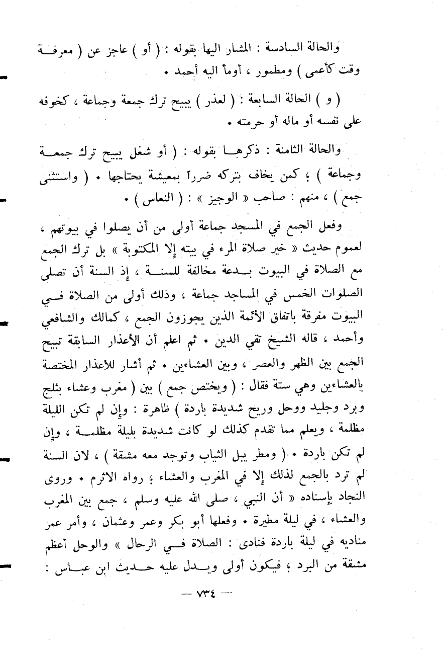 وَالْحَالَةُ السَّادِسَةُ: الْمُشَارُ إلَيْهَا بِقَوْلِهِ: (أَوْ) عَاجِزٌ عَنْ (مَعْرِفَةِ وَقْتٍ كَأَعْمَى) وَمَطْمُورٍ، أَوْمَأَ إلَيْهِ أَحْمَدُ. (وَ) الْحَالَةُ السَّابِعَةُ: (لِعُذْرٍ) يُبِيحُ تَرْكَ جُمُعَةٍ وَجَمَاعَةٍ، كَخَوْفِهِ عَلَى نَفْسِهِ أَوْ مَالِهِ أَوْ حُرْمَتِهِ وَالْحَالَةُ الثَّامِنَةُ: ذَكَرَهَا بِقَوْلِهِ: (أَوْ شُغْلٍ يُبِيحُ تَرْكَ جُمُعَةٍ وَجَمَاعَةٍ) ؛ كَمَنْ يَخَافُ بِتَرْكِهِ ضَرَرًا بِمَعِيشَةٍ يَحْتَاجُهَا. (وَاسْتَثْنَى جَمْعٌ) ، مِنْهُمْ: صَاحِبُ " الْوَجِيزِ ": (النُّعَاسَ)
