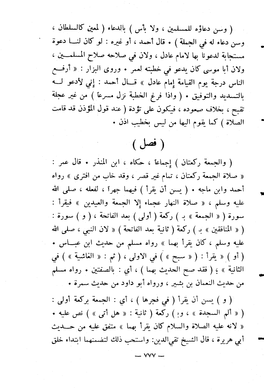 (فَصْلٌ) (وَالْجُمُعَةُ رَكْعَتَانِ) إجْمَاعًا، حَكَاهُ ابْنُ الْمُنْذِرِ.