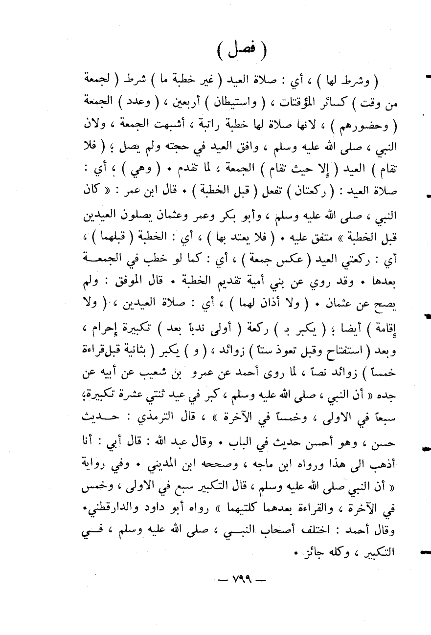 [فَصْلٌ شُرُوطَ صَلَاةِ الْعِيدِ]