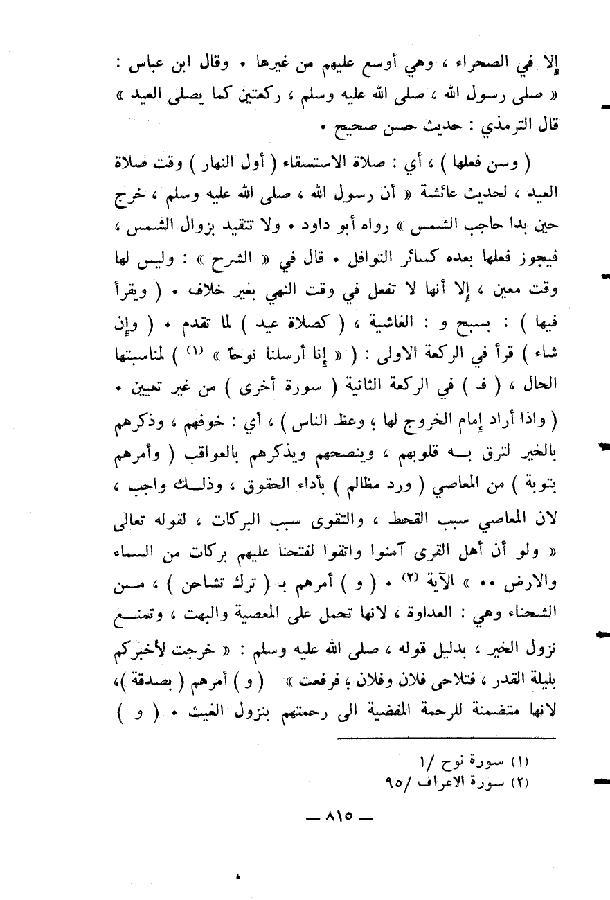وَقَالَ ابْنُ عَبَّاسٍ: «صَلَّى رَسُولُ اللَّهِ - صَلَّى اللَّهُ عَلَيْهِ وَسَلَّمَ - رَكْعَتَيْنِ كَمَا يُصَلِّي الْعِيدَ» قَالَ التِّرْمِذِيُّ: حَدِيثٌ حَسَنٌ صَحِيحٌ.