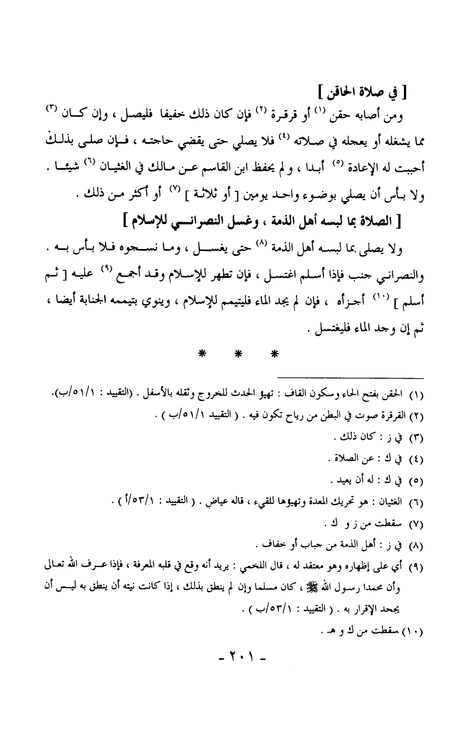 66 - ولا يصلي بما لبسه أهل الذمة حتى يغسل، وما نسجوه فلا بأس به. والنصراني جنب فإذا أسلم اغتسل، فإن تطهر للإسلام وقد أجمع عليه [ثم أسلم] أجزأه، فإن لم يجد الماء فليتيمم للإسلام، وينوي بتيممه الجنابة أيضاً، ثم إن وجد الماء فليغتسل. (¬5)