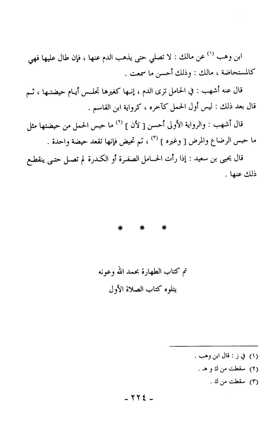 113 - قال أشهب: والرواية الأولى أحسن [لأن] ما حبس الحمل من حيضتها مثل ما حبس الرضاع والمرض [وغيره] ، ثم تحيض فإنها تقعد حيضة واحدة.