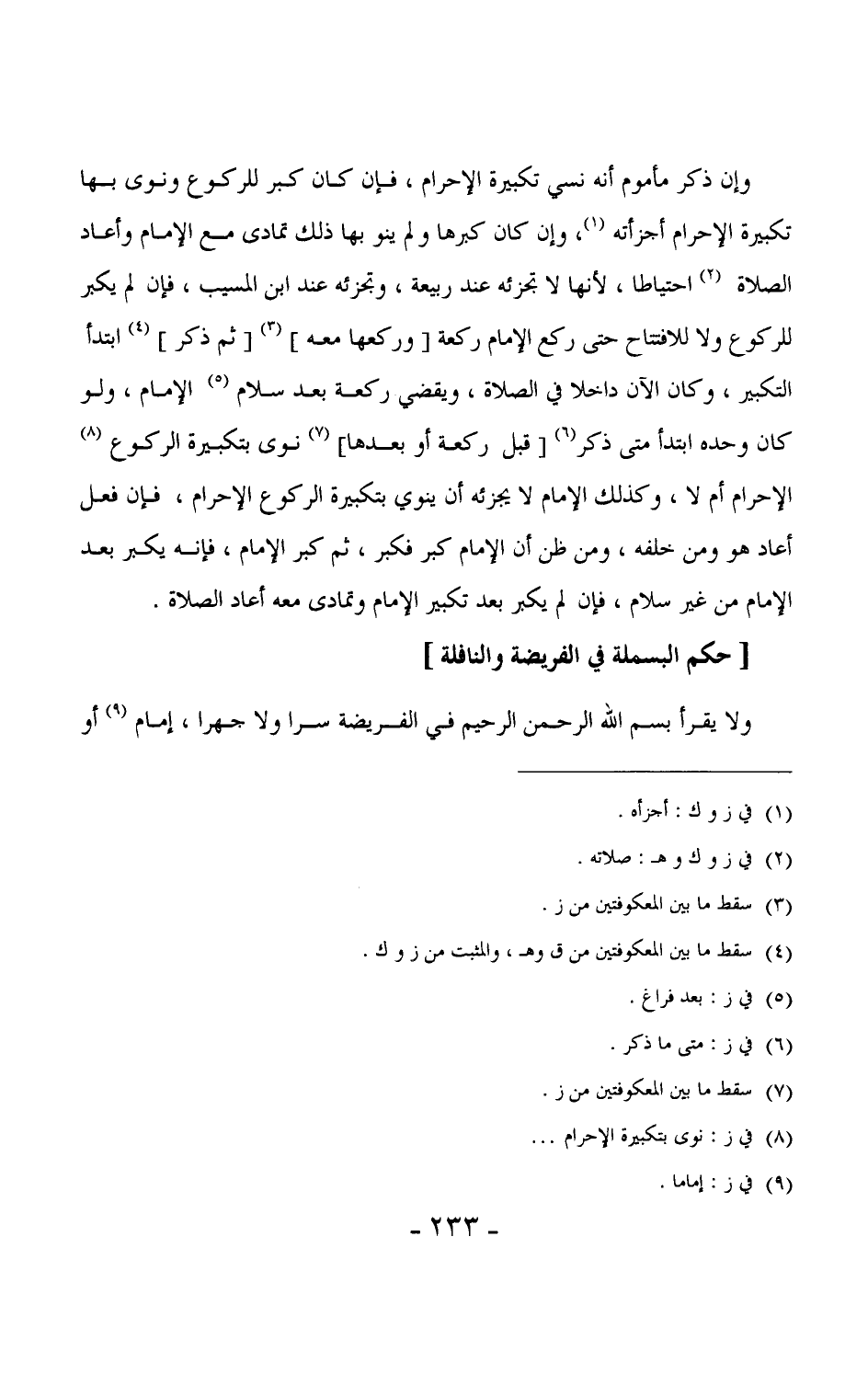 133 - ولا يقرأ بسم الله الرحمن الرحيم، في الفريضة سراً ولا جهراً، إمام أو