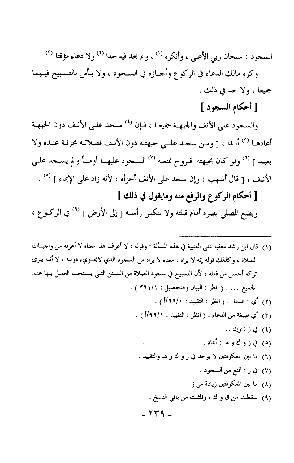 143 - ويضع المصلي بصره أمام قبلته ولا ينكس رأسه [إلى الأرض] في الركوع،