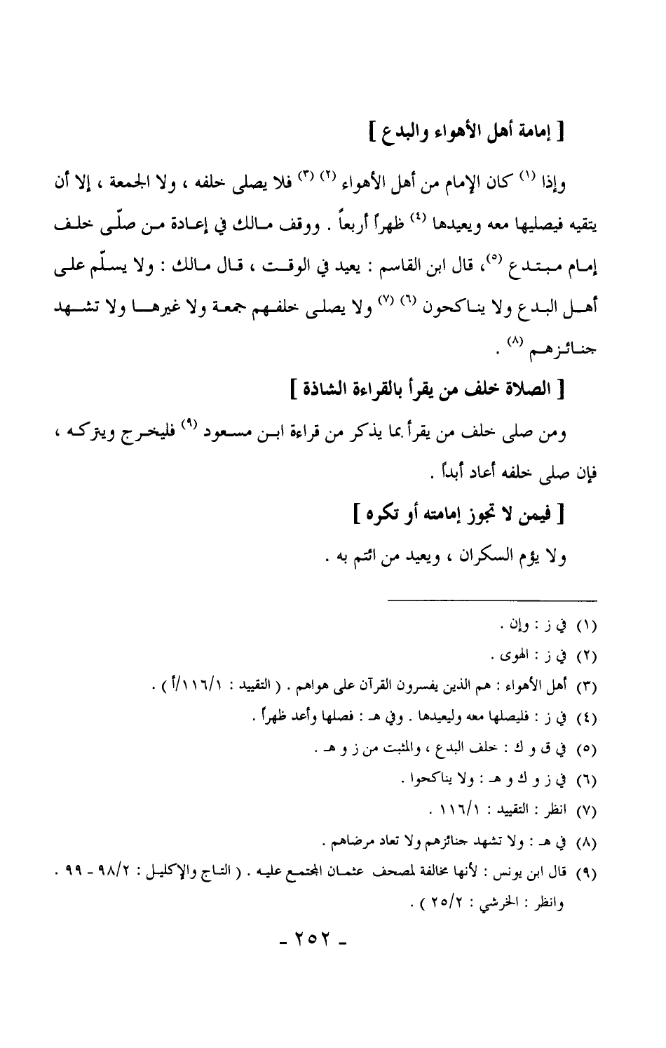 168 - ومن صلى خلف من يقرأ بما يذكر من قراءة ابن مسعود (¬1) فليخرج ويتركه، فإن صلى خلفه أعاد أبداً.