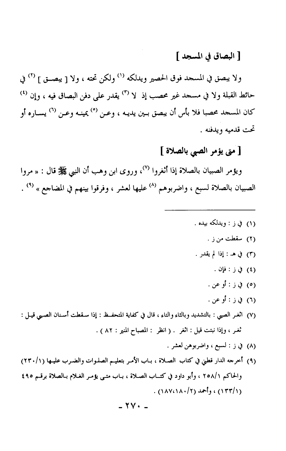 208 - ويؤمر الصبيان بالصلاة إذا أثغروا (¬2) ، وروى ابن وهب أن النبي ÷ قال: "مروا الصبيان بالصلاة لسبع، واضربوهم عليها لعشر، وفرقوا بينهم في المضاجع". (¬3)
