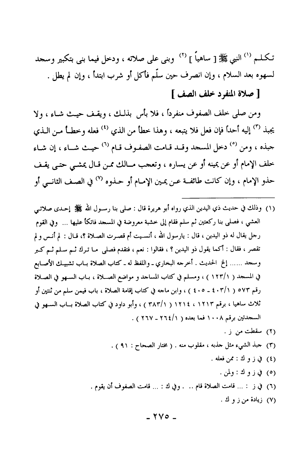 (¬1) إشارة لحديث أبي بكرة في البخاري (783) وانظر: تلخيص الحبير (2/37) .