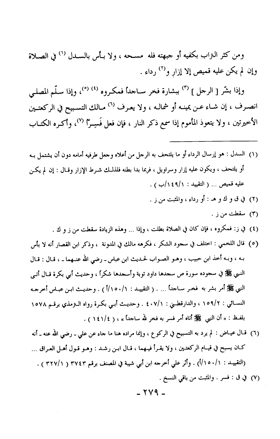 230 - ومن كثر التراب بكفيه أو جبهته فله مسحه، ولا بأس بالسّدل (¬1) في الصلاة وإن لم يكن عليه قميص إلا إزار ورداء.