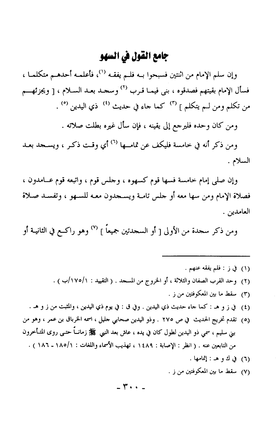 286 - وإن صلى إمام خامسة فسها قوم كسهوه، وجلس قوم، واتبعه قوم عامدون، فصلاة الإمام ومن سها معه أو جلس تامة ويسجدون معه للسهو، وتفسد صلاة العامدين.