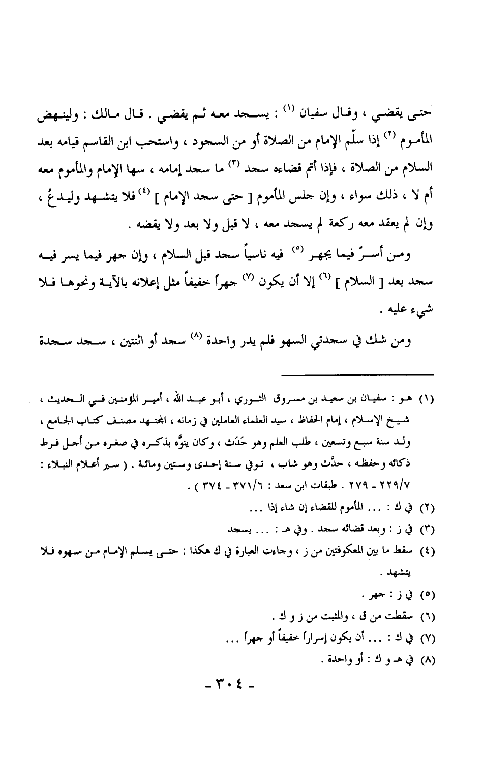 300 - ومن أسرّ فيما يجهر فيه ناسياً سجد قبل السلام، وإن جهر فيما يسر فيه سجد بعد [السلام] إلا أن يكون جهراً خفيفاً مثل إعلانه بالآية ونحوها فلا شيء عليه.