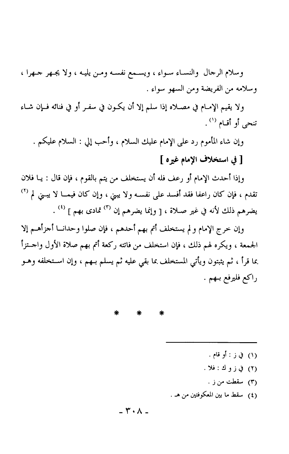 312 - وإن شاء المأموم رد على الإمام عليك السلام، وأحب إلي: السلام عليكم.