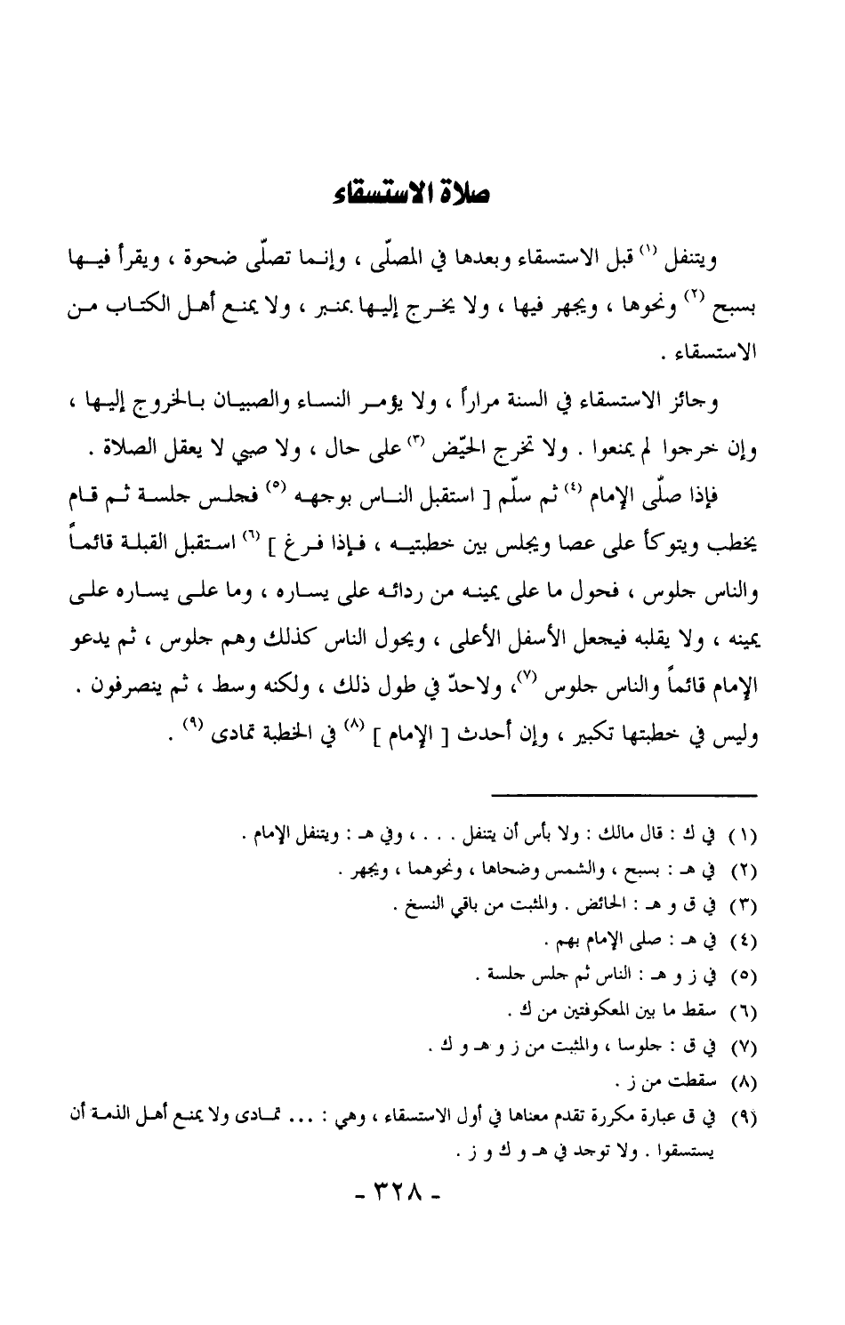 365 - وجائز الاستسقاء في السنة مراراً، ولا يؤمر النساء والصبيان بالخروج إليها، وإن خرجوا لم يمنعوا. ولا تخرج الحيّض على حال، ولا صبي لا يعقل الصلاة.