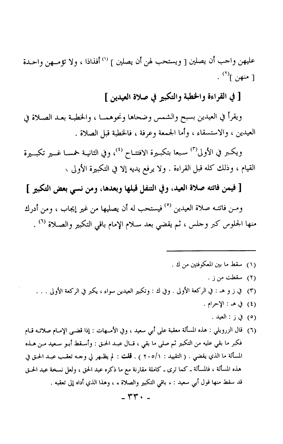371 - ويكبر في الأولى سبعاً بتكبيرة الافتتاح، وفي الثانية خمساً غير تكبيرة القيام، وذلك كله قبل القراءة. ولا يرفع يديه إلا في التكبيرة الأولى. (¬1)