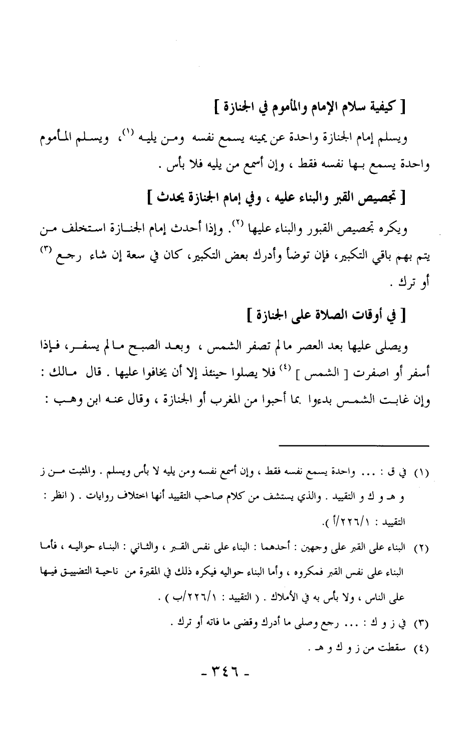 412 - ويسلم إمام الجنازة واحدة عن يمينه يسمع نفسه ومن يليه، ويسلم المأموم واحدة يسمع بها نفسه فقط، وإن أسمع من يليه فلا بأس.