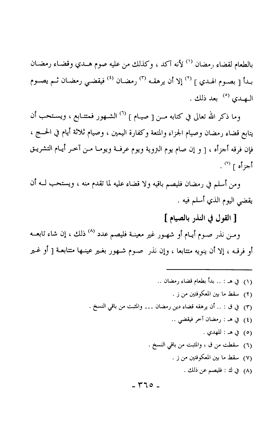 458 - ومن نذر صوم أيام أو شهور غير معينة فليصم عدد ذلك، إن شاء تابعه أو فرقه، إلا أن ينويه متتابعاً، وغن نذر صوم شهور بغير عينها متتابعة [أو غير