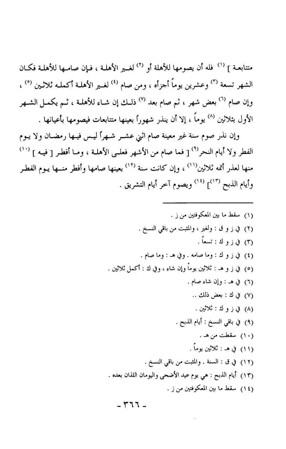 وإن نذر صوم سنة غير معينة صام اثني عشر شهراً ليس فيها رمضان ولا يوم الفطر ولا أيام النحر [فما صام من الأشهر فعلى الأهلة، وما أفطر بفيه] منها لعذر أتمه ثلاثين، وإن كانت سنة بعينها صامها وأفطر منها يوم الفطر وأيام الذبح] ويصوم آخر أيام التشريق.