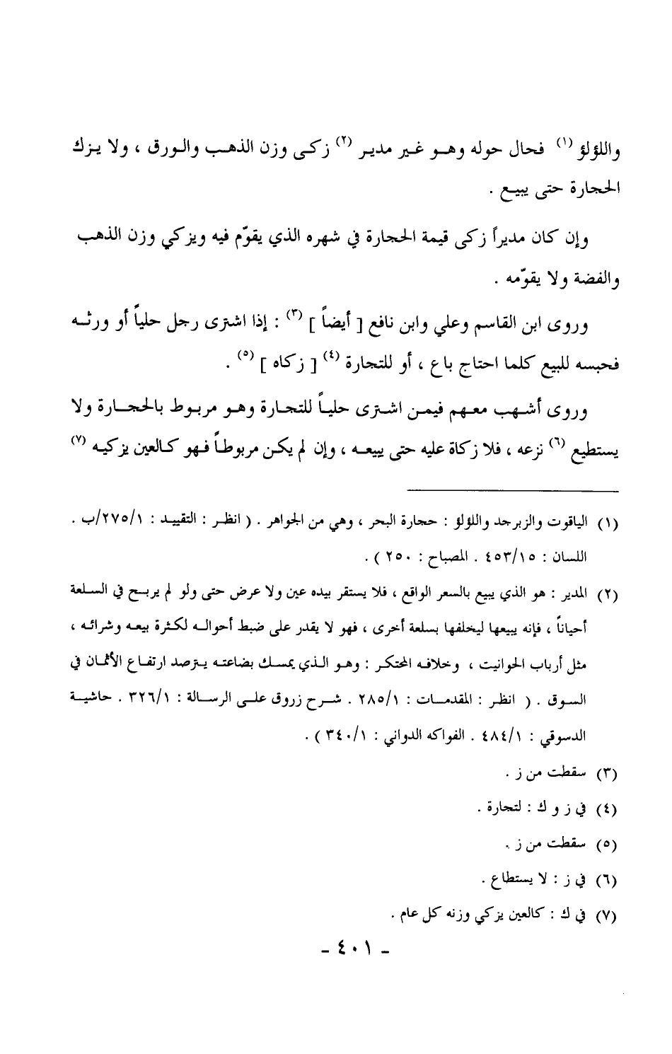 531 - وروى ابن القاسم وعلي وابن نافع [أيضاً] : إذا اشترى رجل حلياً أو ورثه فحبسه للبيع كلما احتاج باع، أو لتجارة [زكاه] .